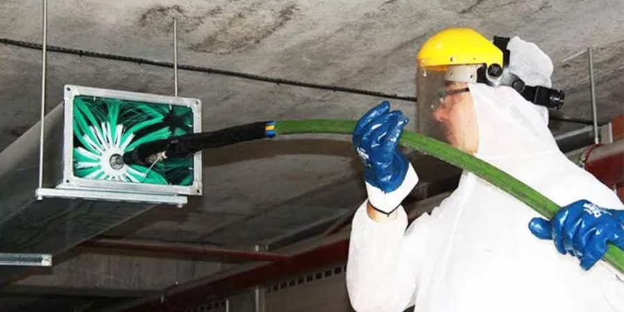 Наши дезинфекторы Илья Беняковкин и Сергей Хорошавин провели чистку вентиляции во «Внуково».
